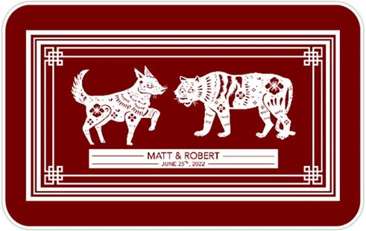 Match Boxes | Custom match boxes were designed with each of the groom’s Chinese Zodiac signs.